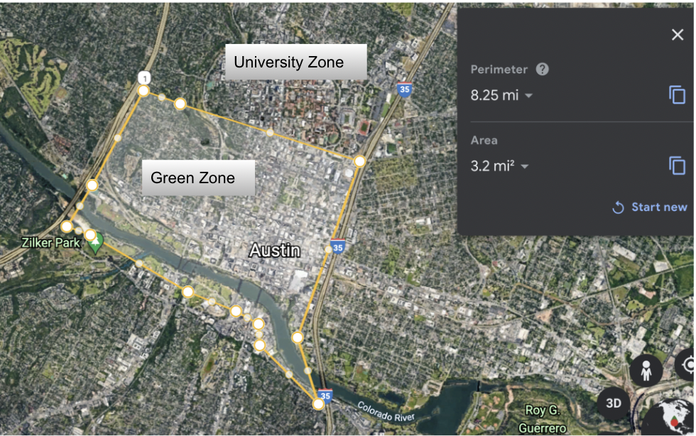 The Green Zone in Scattershot was drawn tightly around the government and corporate districts in downtown Austin.